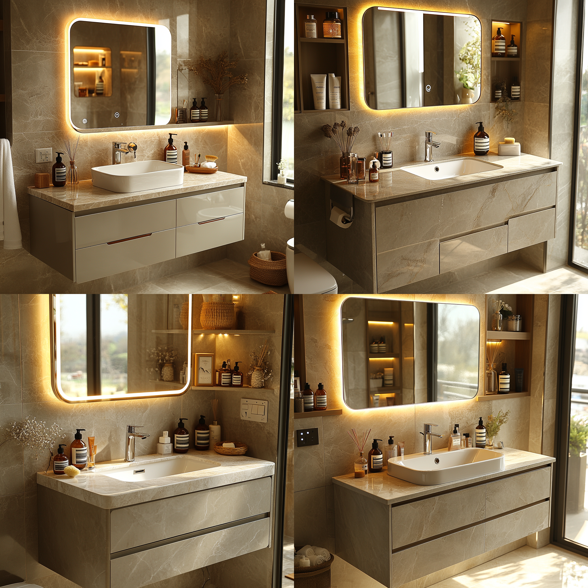Unified aesthetic for vanities, mirrors, towel racks, etc.