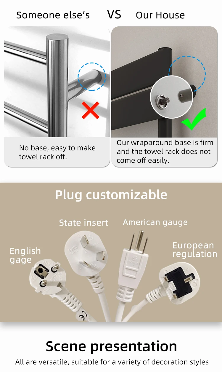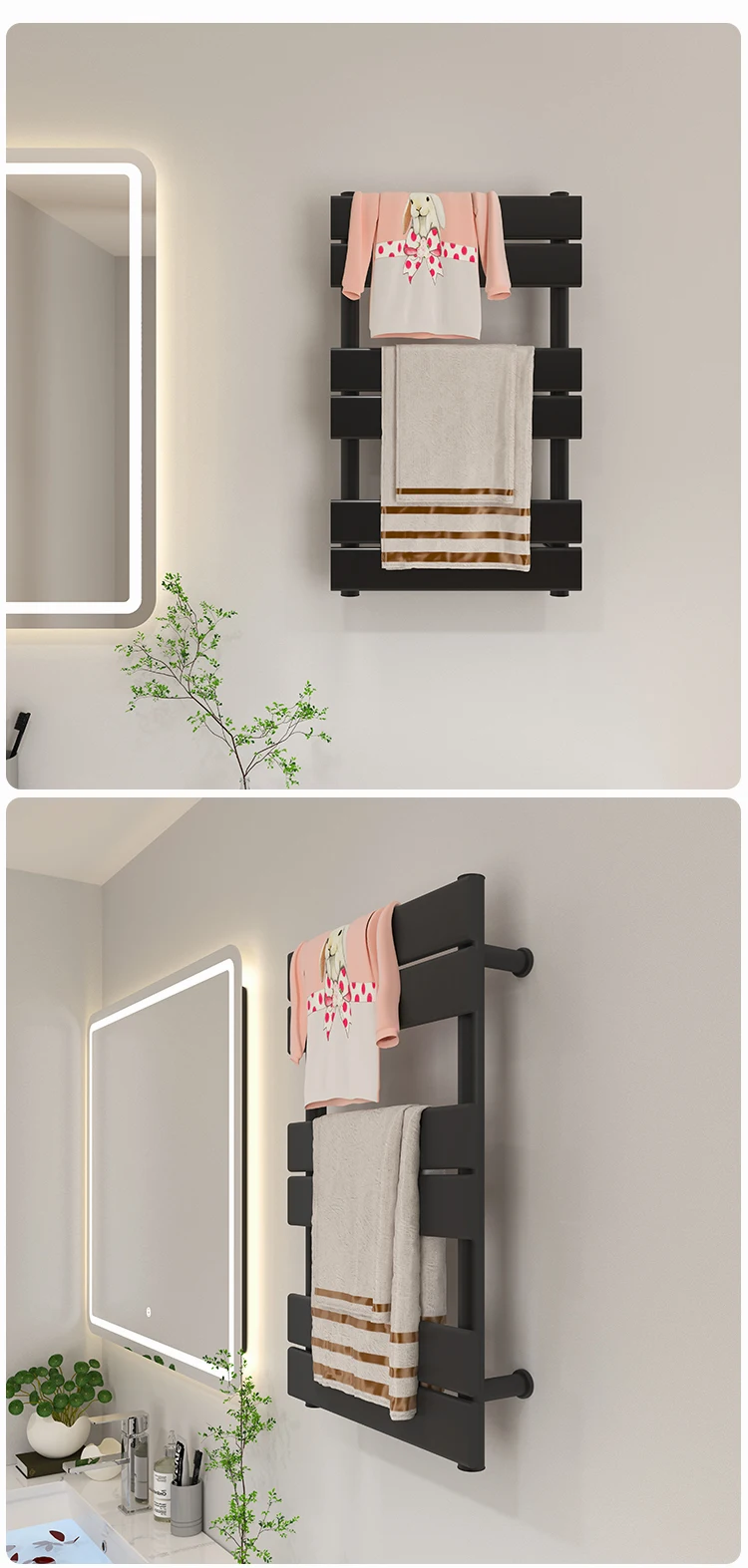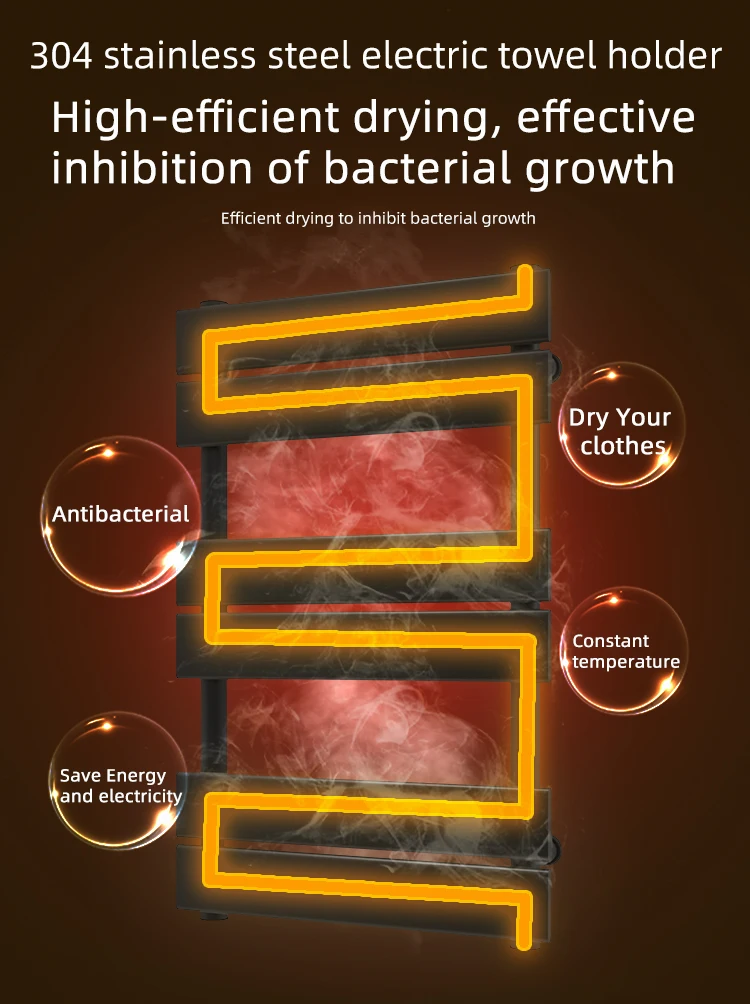 2022 Bathroom Radiator Heated Towel Rail Wall Mounted Heated Towel Warmer Black Towel Warmer