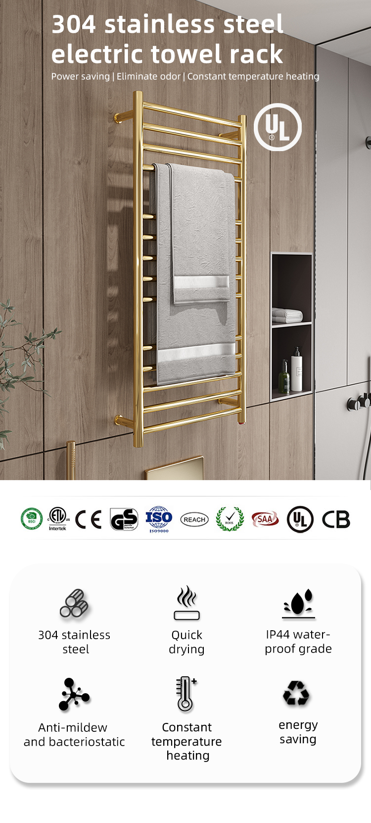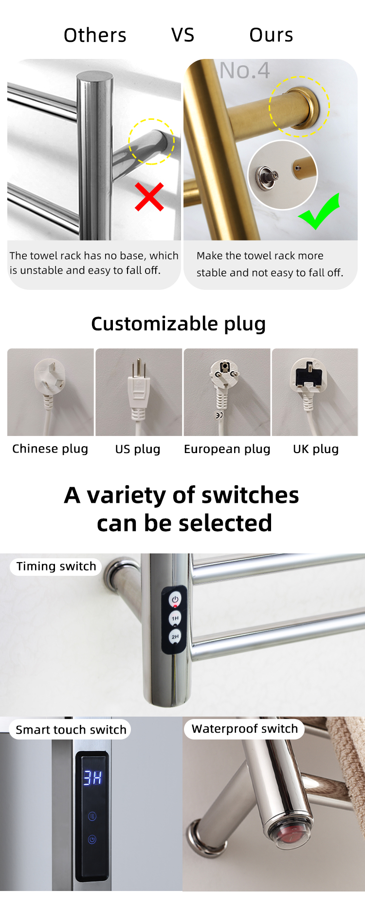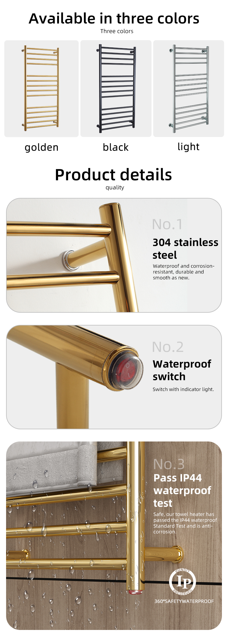 Chrome shiny gold stainless steel towel warmers bathroom electric heated towel rail bathroom radiator with timer