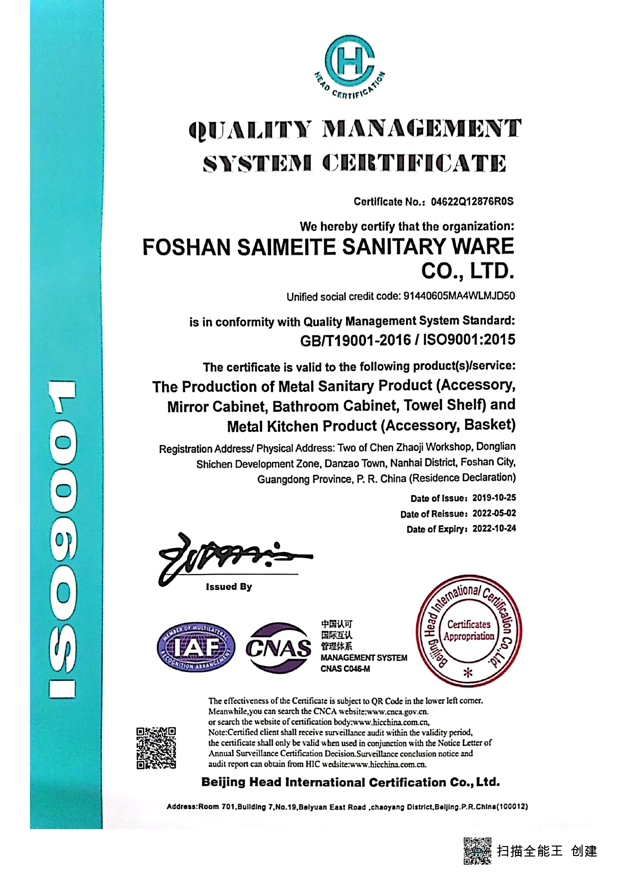 In 2010, We got the ISO 9001 certificate