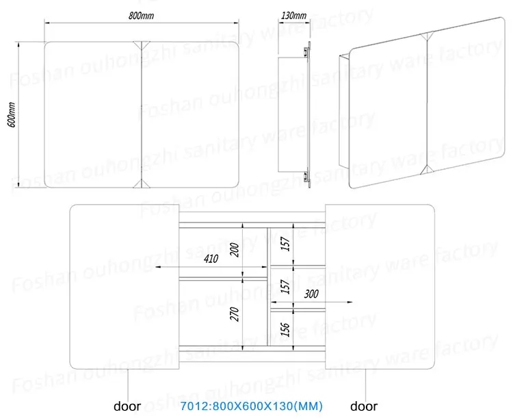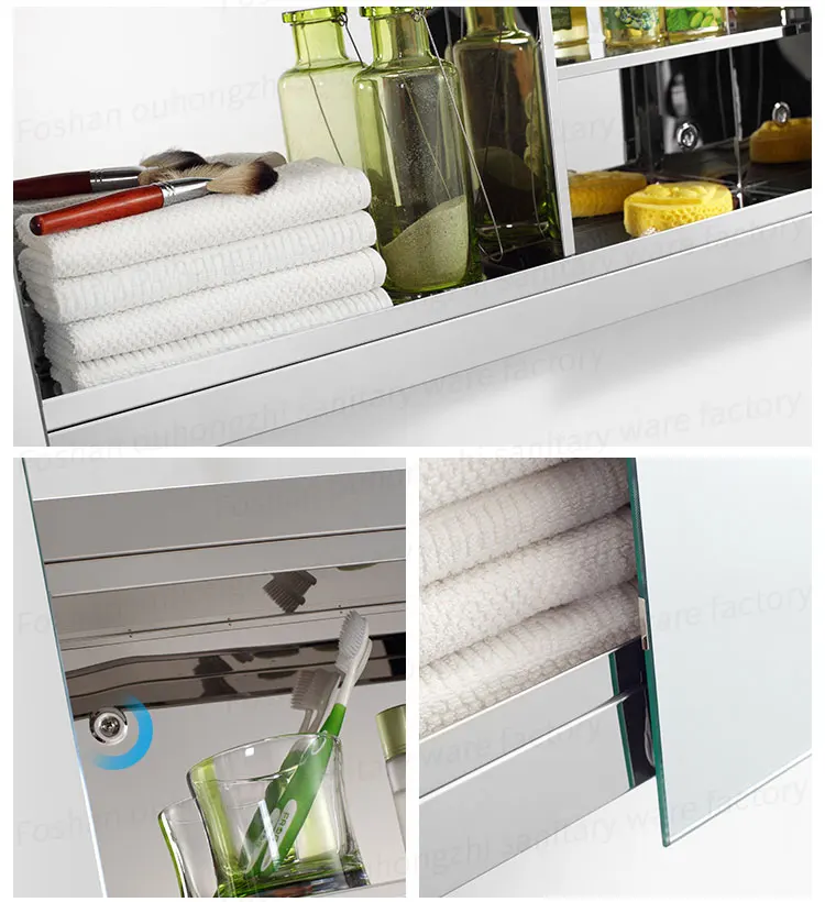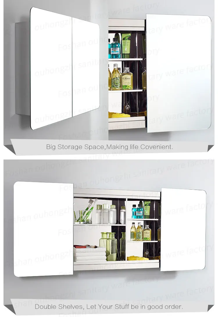 Double Sliding door Polished stainless steel Bathroom vanity mirror mirrored wall cabinet