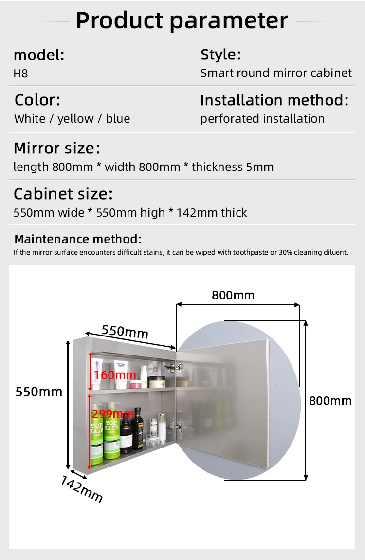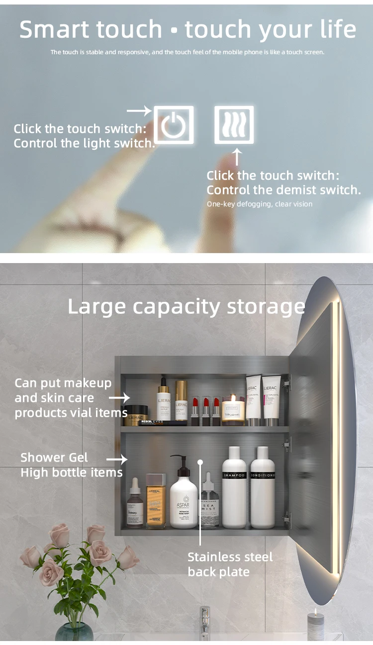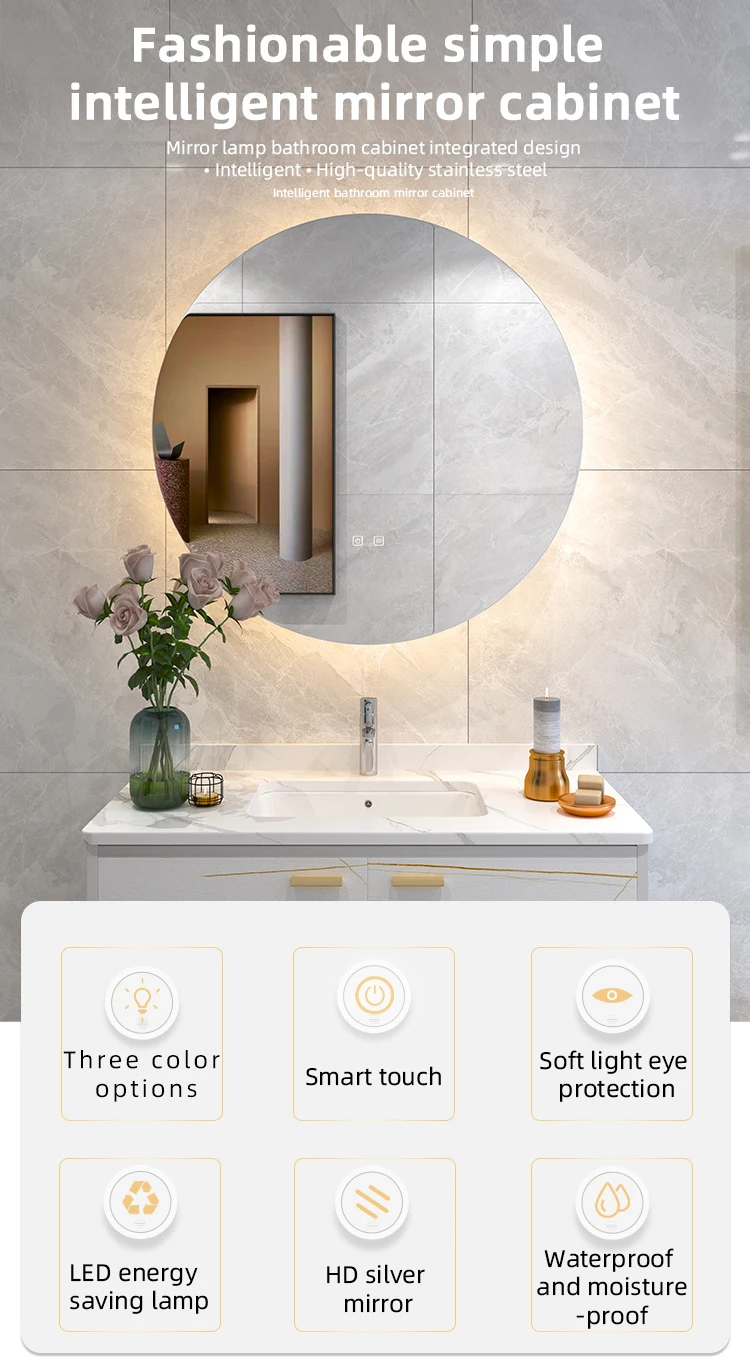 European Style Bath Oval Mirror Stepless Dimming Frosted Edge Round Mirrors Bath Smart Bath Room Mirrors Cabinet