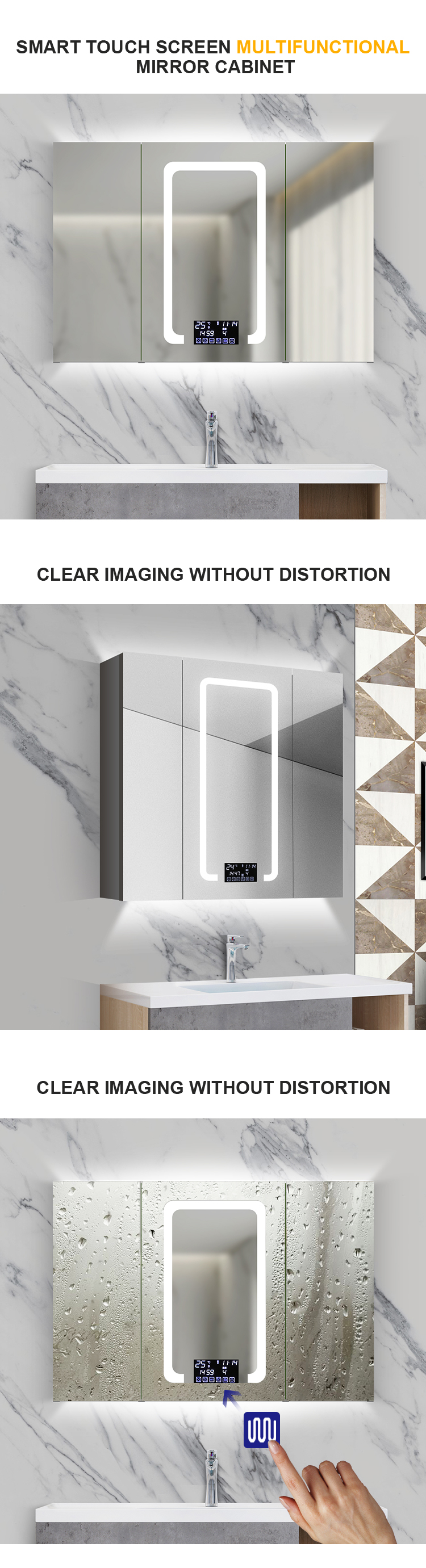 Newest Arrival Anti Fog Stainless Steel Bathroom LED Mirror Cabinets Bathroom Vanities With LED Light S80
