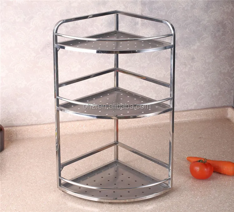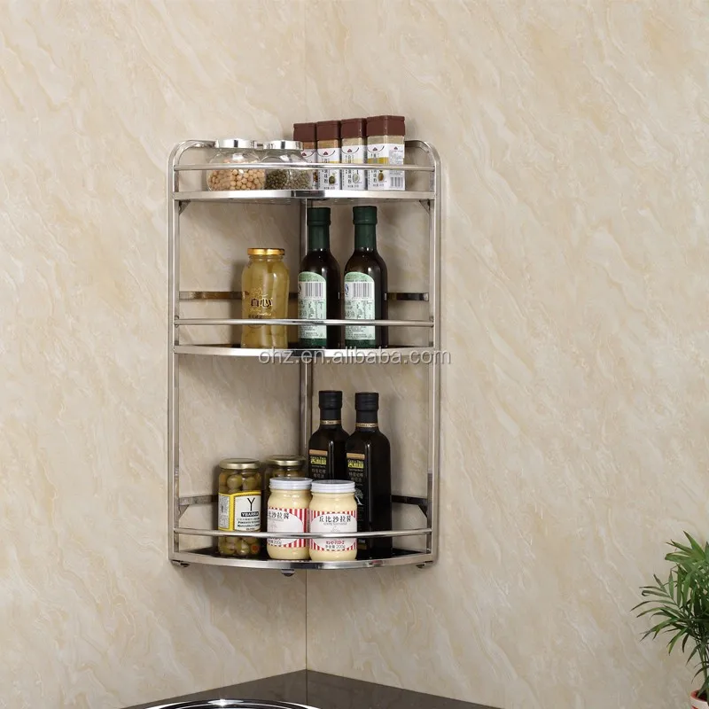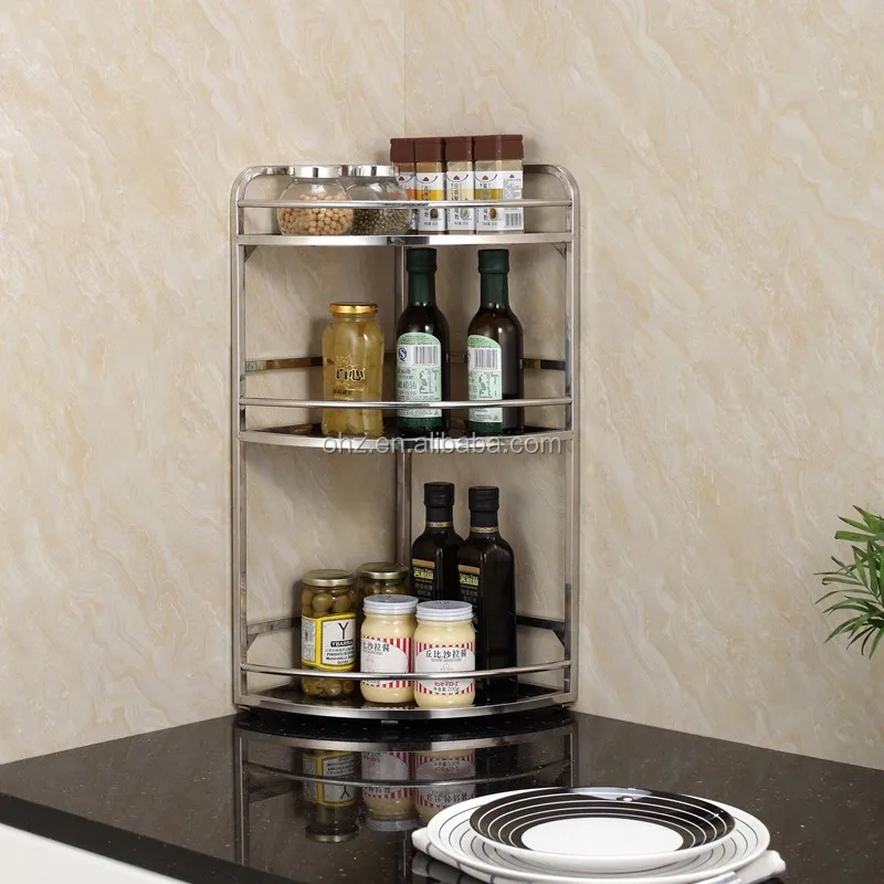 Polishing 3 Layer stainless steel kitchen modular decorative storage holders spice corner rack